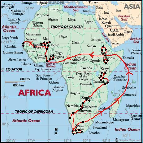 Traveling in East and Southern Africa was relatively easy - partly because the most interesting locations are at elevations with comfortable temperatures, and partly because we took five wildlife safaris there (from three to ten days each) and the tour companies took care of all logistics. West Africa was much more difficult, due to the heat, humidity, our inability to speak much French, and illness. By the time we reached Senegal, we were in sorry shape. Have a laugh at our travel problems, including the visit to Lou's gynecologist in BUMBLING AROUND AFRICA