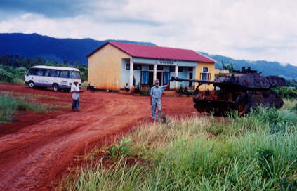 Our first stop was a ruined church in Quang Tri. The badly shot-up edifice was the scene of 81 days of fighting in 1970. At different times, both VC and American troops occupied the church. The incredible number of bullet and artillery holes suggests that there were more than a few casualties here. One particularly disturbing perspective appeared as we moved into the right nave and looked up through a high arched opening. There, perfectly framed in the war-ravaged window, was a fallen cross. What a collision of symbols!
