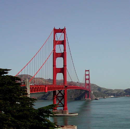 San Francisco is one of the world’s great walking cities. We made a record of our walking forays by coloring streets yellow on a city map and using red to color areas we traveled by bus, trolley, BART, truck, or ferry. The map looked like a Mondrian painting by the end of our stay. The public library sponsors free City Guides walking tours led by volunteers who know the city's history. About 25 different tours are offered each week; we took 15 during our two-month stay. Especially recommended tours: North Beach, North Beach at Night, Chinatown, Pacific Heights Mansions, Coit Tower Murals, Gold Rush City, Telegraph Hill, Nob Hill, and Golden Gate Bridge. To take the bridge walk, we (plus Joan's sister and brother-in-law) caught a bus to the San Francisco side of the bridge to meet the tour group. On the walk across the 1.7-mile bridge, we learned about its design and construction and the “Halfway to Hell Club” of workers who’d been caught by the safety net when they fell. From the north end of the bridge, we walked into Sausalito where – weary after nearly seven miles on cement sidewalks - we caught a ferry back home and took naps. (Joan's sister Sue Krevitt took this photo of the bridge just before we walked across it.)