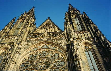 We took an introductory walking tour of the city, learning about each castle and cathedral, and the notable people who had lived here. Mozart enjoyed his visit to Prague - his opera "The Magic Flute" had been disdained by most Viennese but was well received by the Czechs. Franz Kafka experienced a difficult life here as a German-speaking Jew; those who have read his novel "The Trial" will understand its genesis in the tortured paths and many dead-ends of the old city. Famous composers Dvorak and Smetana lived here; we celebrated their creativity by attending a concert of their work. Below is a beautiful old Jewish temple in Prague.
